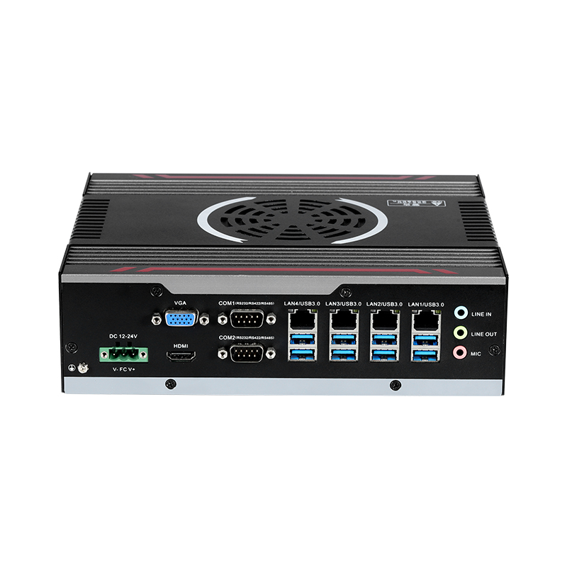 外觀時(shí)尚 : 鋁合金一體成型,結(jié)構(gòu)緊湊,MiNi小巧,工藝精細(xì),科技時(shí)尚高性能 : 支持65W及以下6/7/8/9 代1151 Intel Core i7/i5/i3 系列處理器穩(wěn)定可靠 : 純工業(yè)設(shè)計(jì),強(qiáng)勁解熱熱管與純銅一體化的優(yōu)良散熱結(jié)構(gòu),全密封鋁合金箱體,大面積鋁鰭散熱,可實(shí)現(xiàn)橫向與豎向等多種放置的自然對(duì)流散熱,機(jī)箱可抗接觸式6KV強(qiáng)電磁干擾,DC12V-24V寬壓輸入接口豐富 :4*LAN(Intel),6*COM,24*GPIO(12*GPI,12*GPO,帶隔離),7*USB3.0+1*USB2.0,1*VGA,1*HDMI,1*遠(yuǎn)程開(kāi)關(guān),1*一鍵還原,1*一鍵備份,1*SIM槽,1*LINE IN,1*LINE OUT,1*MIC,1*2.5寸硬盤(pán)位,1*M.2(KEY-M,2280,PCIEx4 NVME與SATA自適應(yīng)),1*M.2(KEY-B,3042/3052,PCIE+USB3.0支持4G/5G),1*MINI PCIE(全高,PCIE+USB2.0信號(hào),支持WiFi/BT)